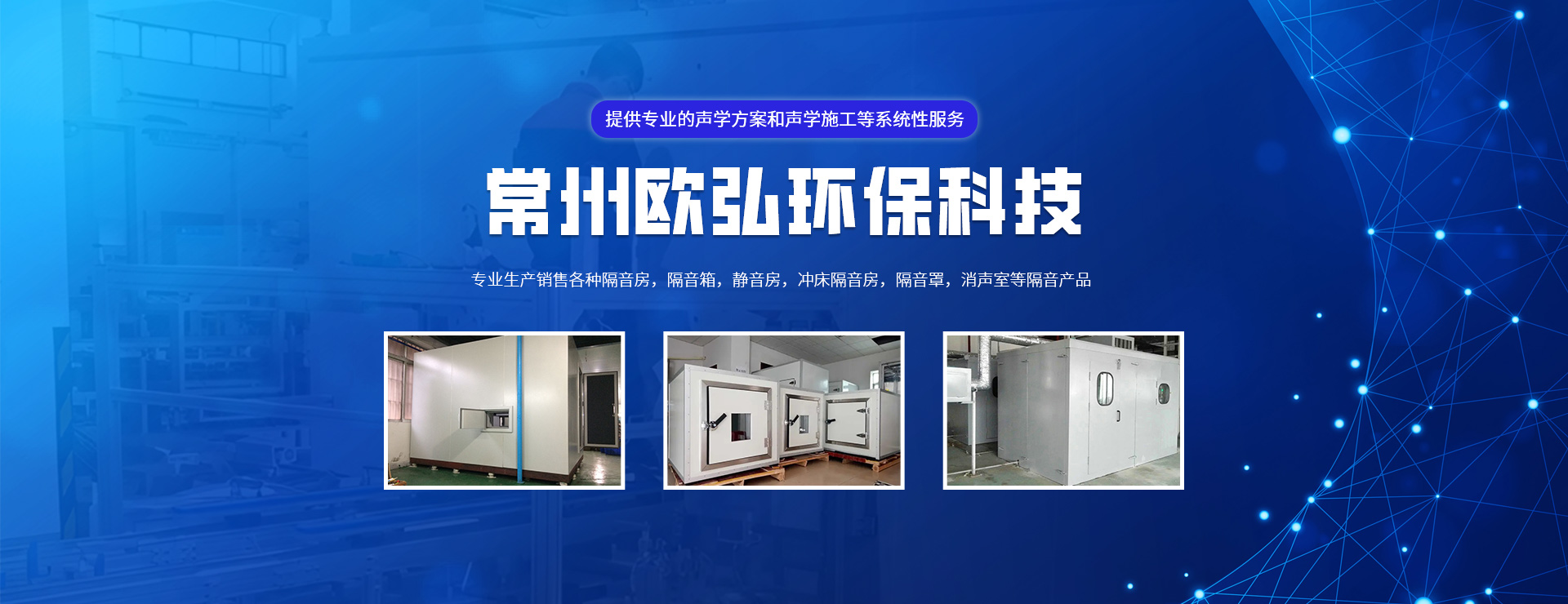 常州歐弘環(huán)保科技有限公司是一家專注噪聲治理的企業(yè),公司專注生產(chǎn)銷售各種隔音房,隔音箱,靜音房,沖床隔音房,隔音罩,消聲室等隔音產(chǎn)品。客戶涵蓋汽車、家電、醫(yī)療、健身器械等眾多行業(yè)。  我公司專注于為客戶提供聲環(huán)境深度檢測;聲學(xué)方案研究、設(shè)計;聲學(xué)產(chǎn)品研發(fā)、優(yōu)選;聲學(xué)施工與驗(yàn)收的一整套聲學(xué)系統(tǒng)解決方案,是國內(nèi)成熟的聲學(xué)行業(yè)系統(tǒng)服務(wù)公司。  我們的服務(wù)領(lǐng)域:致力于研究并開發(fā)高性能、高性價